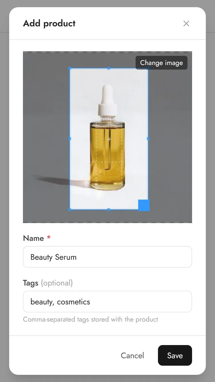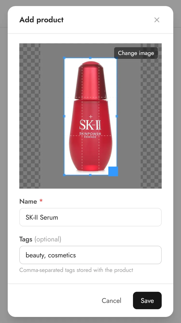 This image will be used by the AI to create your product photos. Make sure to use a clear image and crop the image to your product to avoid confusing the AI.
